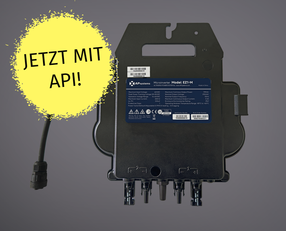 Wir sind froh euch mit dem EZ1-M nun einen Wechselrichter anbieten zu können, der VDE-konform und für die Zukunft ausgelegt ist. Denn der Vorteil des EZ1-M ist, dass er per App von den werksseitigen 600 Watt auf 800 Watt upgradebar ist. Somit seit ihr auf der sicheren Seite, sobald die 600 Watt Grenze auf 800 Watt angehoben wird.
